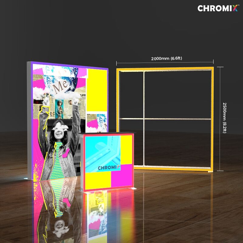 Designed for SEG (Silicone Edge Graphic) fabric prints, the Chromix frame allows graphics to be installed neatly into the frame channels, creating a smooth and wrinkle-free surface. When illuminated, the SEG fabric produces a bright double-sided fabric light box display that delivers strong visual impact in exhibitions, retail environments, and promotional events.