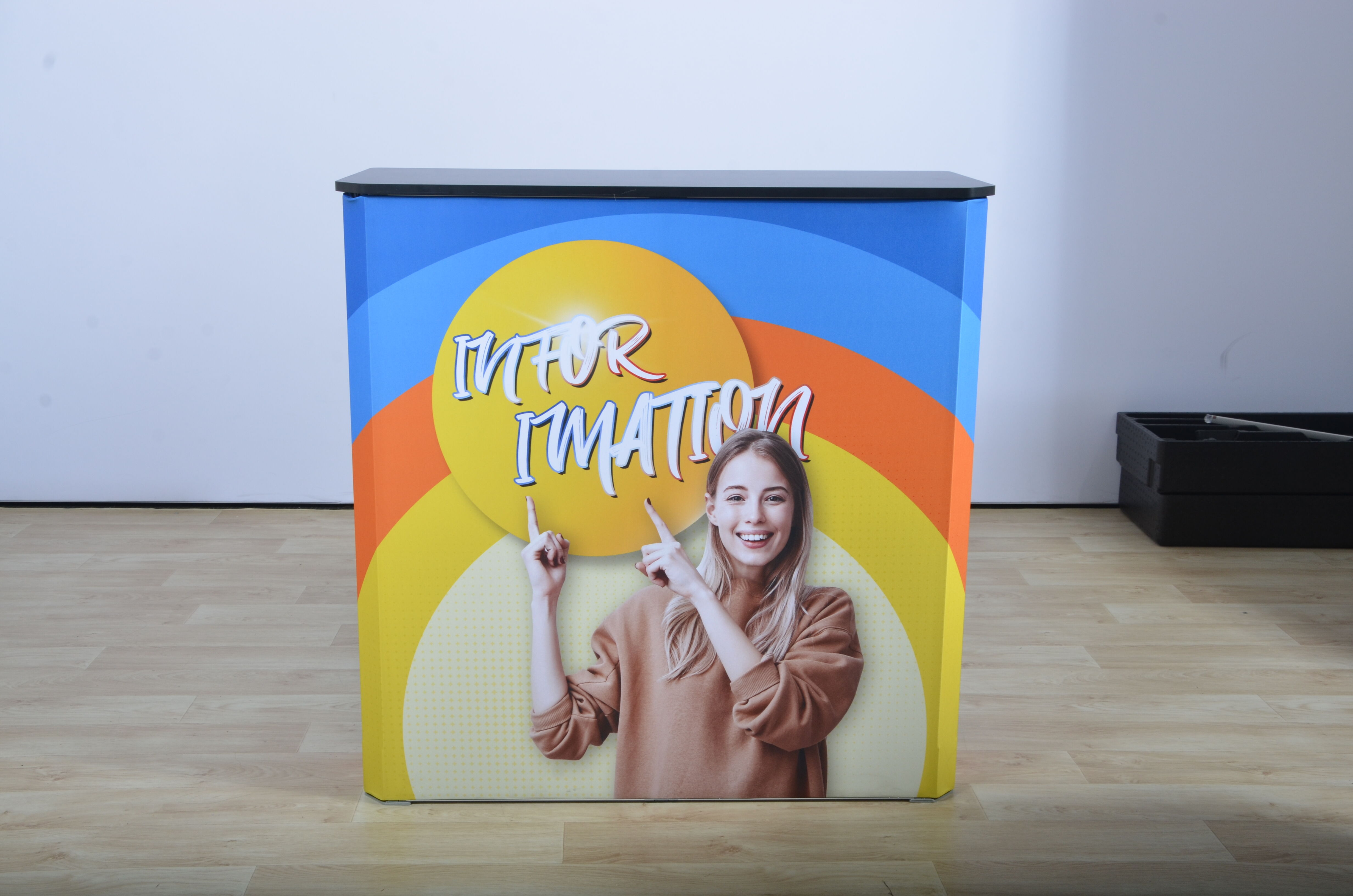 The Lintel Foldable Fabric Frame Counter is designed for frequent travelers and exhibitors. Its 40mm aluminum folding frame allows for quick, tool-free assembly, seamlessly blending functionality and aesthetics. Paired with SEG Tension Fabric Graphics, it allows your brand advertising to be displayed on the front and sides of the frame without any visible material, creating a stunning, high-end effect.